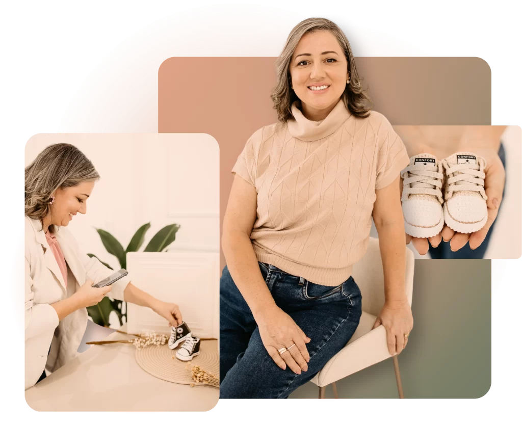 Olá, sou a Meri, fundadora da Lord's Baby Sapatinhos. Há 9 anos, comecei a criar sapatinhos de crochê em busca de independência financeira.